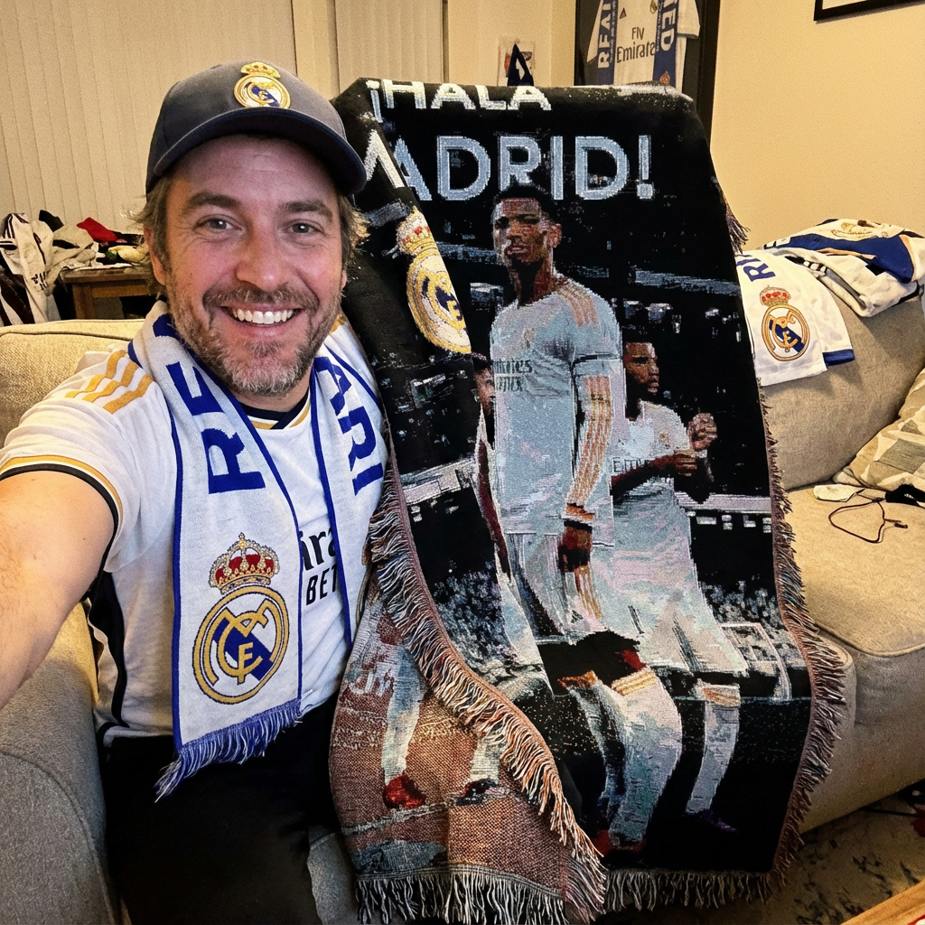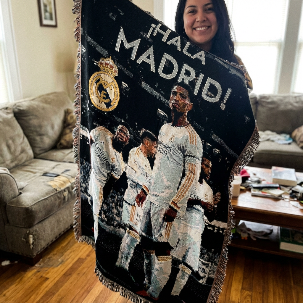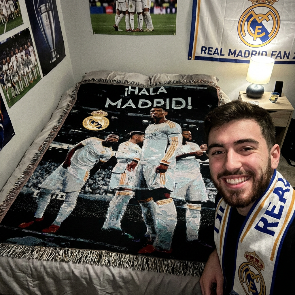 Amazing blanket — Bellingham, Vini, and Rodrygo together look unreal. The print is crisp, fabric super soft, and it just screams Madridismo.